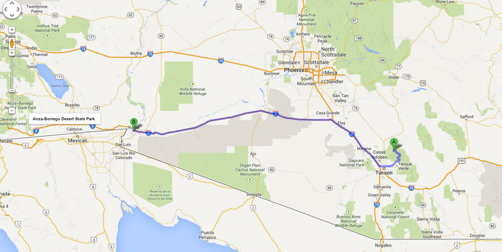 Did I mention that Interstate 8 is a bitch in spring? At our get-me-out-of-here pace, Billy’s Bonneville was sucking down a tank of gas every 80 miles and each leg felt like it took hours. The wind was even worse than the trip east and we were all hanging off our bikes trying to keep it straight. We stopped for gas at one “town” that consisted of a gas station and a closed café and huddled behind the building for a quick break when one of the locals pulled up in his truck to chat.