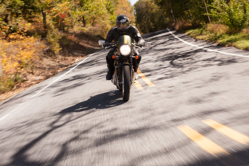 When I got the keys to the Thruxton, I immediately headed out to the low-slung hills of the Appalachian Mountains of eastern Pennsylvania. While living in Southern California and Tennessee, I rode bikes of all shapes and sizes down some of the best roads America has to offer, yet eastern Pennsylvania still holds a special place in my heart. It was here I first learned to ride a motorcycle, a Triumph Bonneville T-100 not so different from this Thruxton.