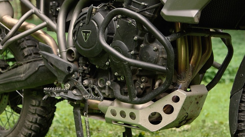 Along with the protection, I was disappointed with Triumph’s tire selection for this bike. The Bridgestone Battle Wings this bike ships with have absolutely no place on a dual-sport bike. In the Bear Grylls ads Triumph has been plastering all over the place, the XCx is depicted with Metzeler Karoo 3 tires, an acceptable tire for a bike intended to spend at least a portion of its life off-road.