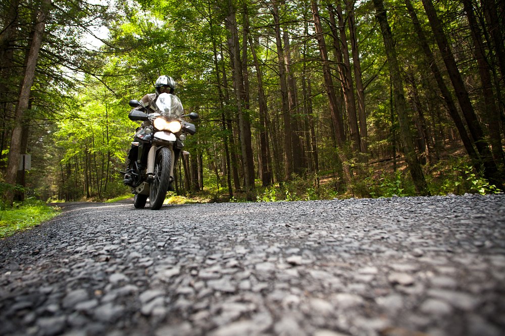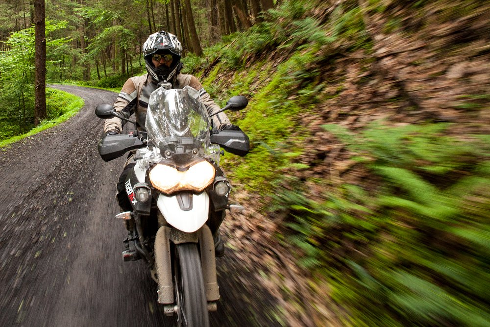 I picked up the bike on a Thursday afternoon and within 24 hours I was off for the weekend, armed with a tent and heading north to the Catskills. The fastest way out of Philadelphia is to hit the Pennsylvania Turnpike and the Tiger handled the hour and a half of highway duty with ease. The electronic cruise control was a welcome addition and worked absolutely flawlessly.