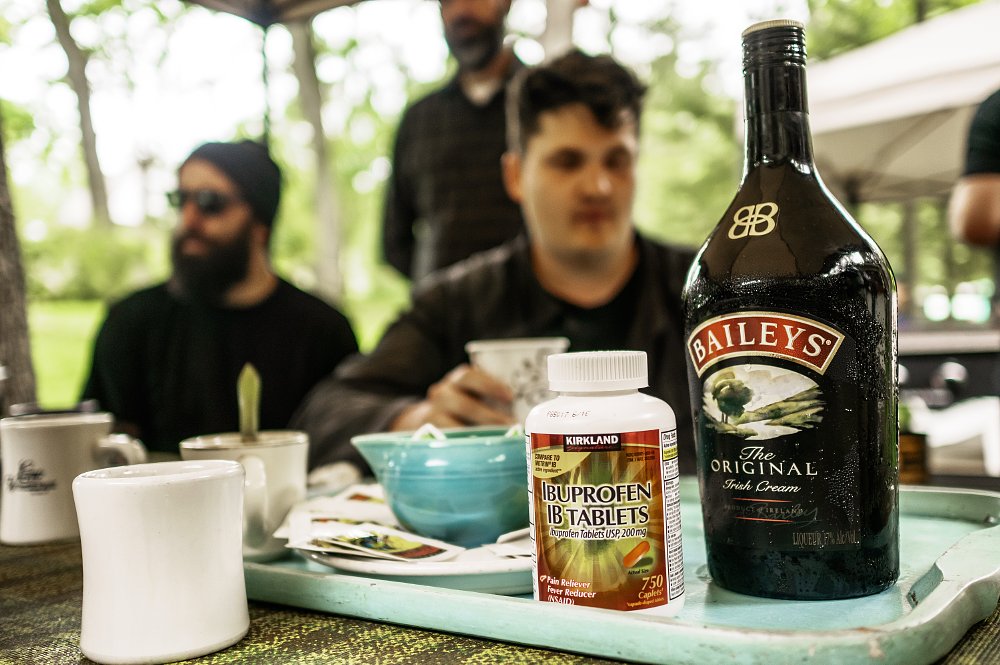 At some point it was determined that only Ural's David Wayne George and I were allowed to ride the special edition bike. This called for a celebration. Photo by Jenny Linquist.