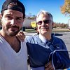 Spurgeon Dunbar and Pops with Triumph Bonneville and Suzuki V-Strom