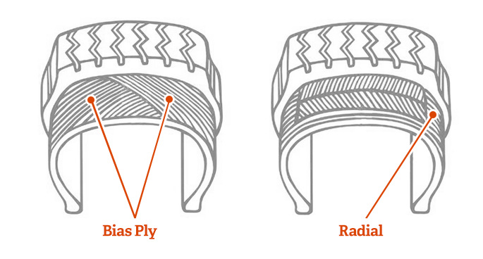 The second problem is that bias-ply tires have a very stiff sidewall due to the fact that all the plies run from sidewall to sidewall. Because radial tires have fewer layers of body cords on the sidewall, the sidewalls allow the tire to flex more. This means the contact patch of the tire stays put on the ground a bit better, and the sidewall provides lots more feedback to the rider. This design also allows the sidewall and tread to work more independently of each other than a bias-ply permits.