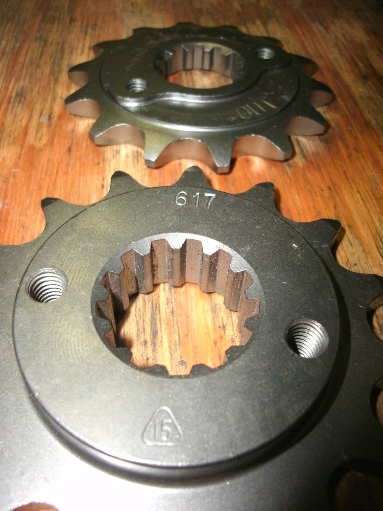 The well known problem with the front sprocket is that it is very thin and does not use much of the available splined area of the countershaft. In the real world, this lets the sprocket move around on the shaft, causing unnecessary wear. The countershaft splines are eventually destroyed, and you have to split the cases to make a repair.