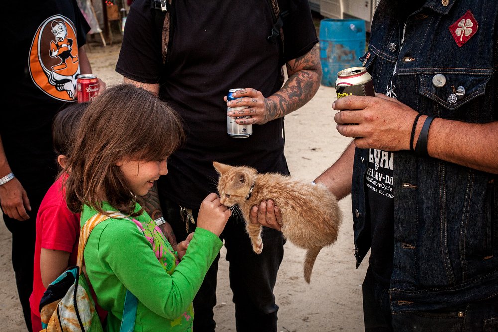 Then we met Pat and Party Cat, who has since become an international internet sensation. Pat looked tough as tarmac, but the way he rescued that lost and injured kitten revealed what was inside. Children ran up to Pat and his buddies, attacking them with giggles and smiles and begging to pet the cat.