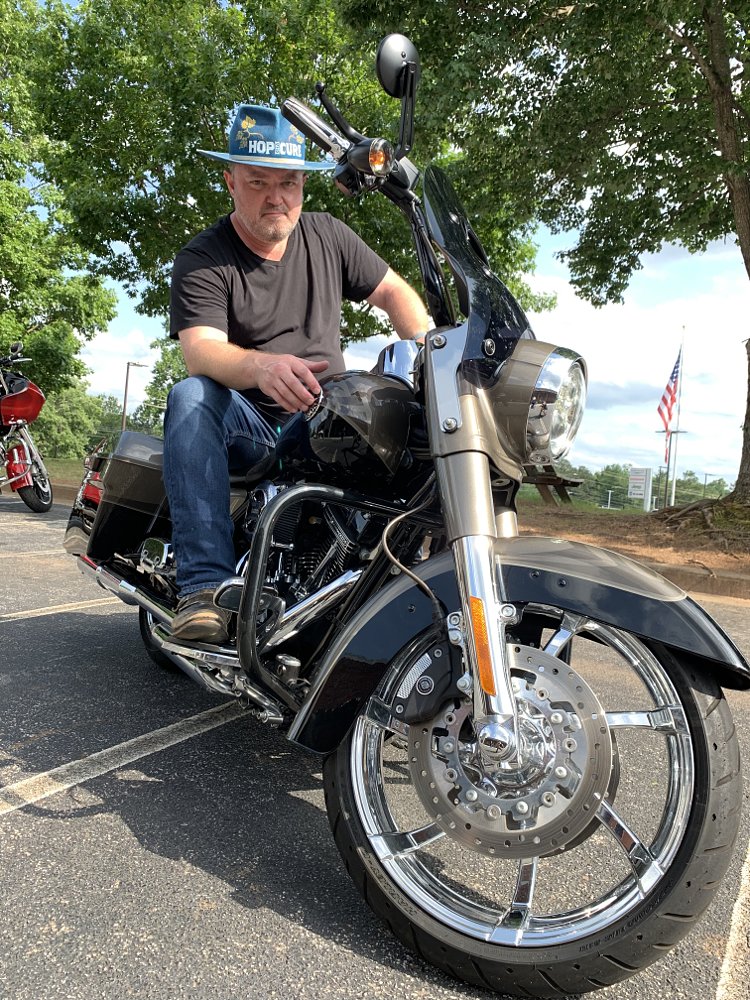 Hop: I’m a year and a half into my diagnosis but I have been feeling symptoms for almost four years. I have three kids, so if I am feeling even the slightest bit impaired in my ability to hold up the bike, then I won't ride. That has become increasingly prevalent in my day-to-day life. Unfortunately, my Road King CVO, my baby, has not accumulated a lot of miles because I've not been able to safely ride it.