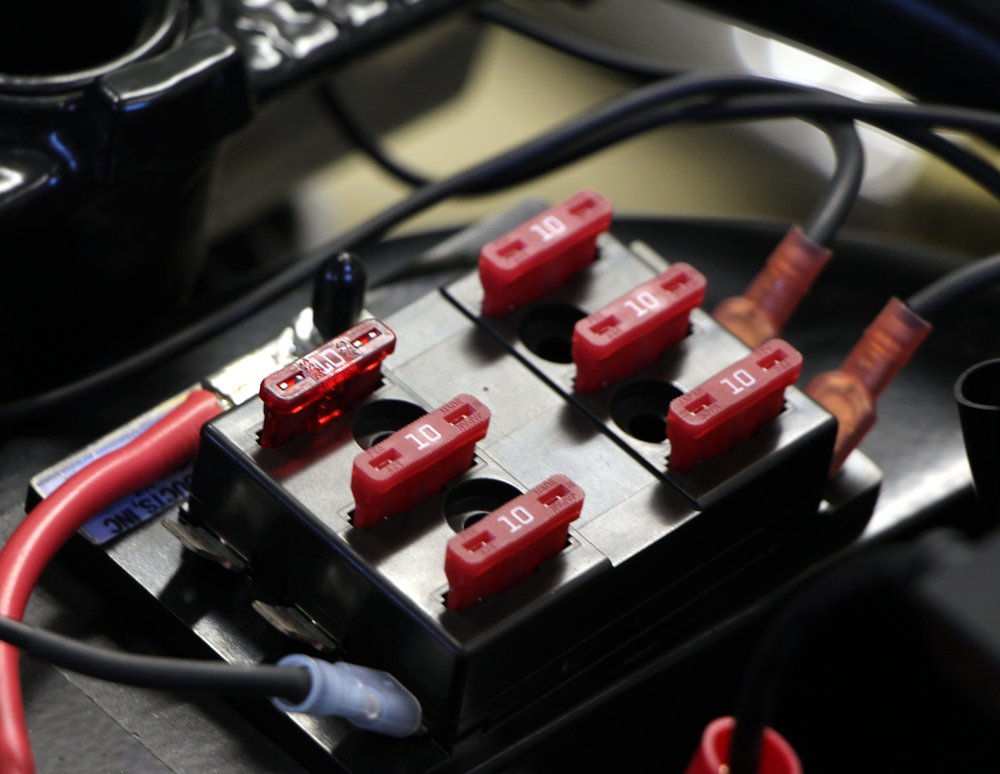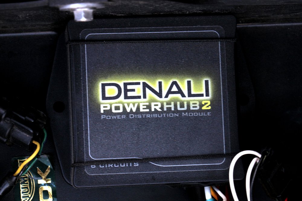Spurgeon likes all that fancy electronic bushwah in his "power distribution modules." Lemmy's a bit simpler. This Rivco unit serves as the electrical hub on a Shovel chopper. It's simple, compact, offers a variety of mounting options, and the price cannot be beat. Photo by Lemmy.Added electrical accessories increase the chances of wiring nightmares. Power distribution hubs are a quick remedy. I would avoid the Denali PowerHub2, because it closely resembled Thanksgiving food. The PowerHub2 is a glorified fuse box that uses traditional fuses. It’s held together with the equivalent of a fancy rubber band. It’s not that it won’t get the job done, it’s just that there are better options available. Take a look instead at the Rowe Electronics PDM60. The PDM60 acts as a circuit breaker, featuring six different circuits that can be programmed via a computer to handle a total of 60 amps. You’ll no longer have to carry spare fuses. Instead, cycle your bike’s ignition off and on and you’ll be set to roll.The Denali PowerHub2. Is this a killer way to start farkling up your bike, or a needlessly complex box with a rubber band holding it together? Spurg and Buzzsaw duke it out. RevZilla photo.