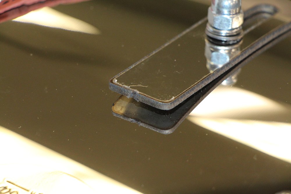 The pan material itself is of sufficient thickness to perform its task, but the seat hinge is entirely too flimsy. A Lemmy-sized fellow plus Milwaukee-sourced vibrations would spell the end of that seat hinge posthaste. RevZilla photo.Let's move on. Early in 2015, I got my hands on a few La Rosa seats and solo conversion kits. What a disappointment. The conversion bracket kits are made from metal of a thickness I would describe as "good enough." The seat hinge bracket that comes with their seats and seat conversion kits is made of the same gauge metal. It's simply too thin for that application, though. The edges of the chromed hinge that comes with the seat haven't been polished on any unit we've seen come in. Hell, they were never even deburred after they got cut. Weak. And the seat? The picture shows a nice glossy brown leather saddle. The reality? A dull, brick-red saddle with a contrasting thread color for the stitching. Try again, LaRosa. Your leather work was top-notch in the past. You’re also a big turkey. Phone me up, I’ll get one out to you.Here's the flimsy seat hinge again, but their chromed units seem to be cut with a plasma cutter or laser. The cut areas don't get polished or chromed. Look at this edge! Not only is it lacking sorely in the style department, but it's rough enough to draw blood. RevZilla photo.