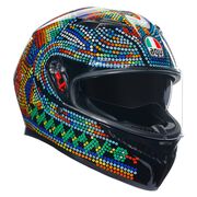 From its High Resistance Thermoplastic shell to its plush, quick-drying and thoughtfully constructed interior, the K3 from AGV is an example of an iconic helmet made even better! You'll slice through the air with ease no matter how you ride thanks to the aggressively styled shell designed to maximize aerodynamic performance and optimized for stability in all riding positions.With a massive field of view, anti-fog Pinlock lens equipped face shield and drop down sun shield you'll be able to keep your eyes on the road ahead with ease in any weather condition. The K3 helmet from AGV is a shining example of premium comfort and top level safety packaged in an aggressively styled and affordable package.