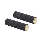 The Knurled pegs are built from forged steel shaft wrapped in high traction knurled rubber for superior grip. The pegs are finished off with a billet aluminum end cap to give your bike a unique look.