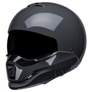 Fierce, stylish, versatile and unmatched, the Bell Broozer helmet stands on its own with its ability to convert from a full face motorcycle helmet to an open face in seconds. This convertible helmet is certified by the DOT as a full face and open face motorcycle helmet. Combining the essential features of anti-fog and anti-scratch shield coatings with slots in the side of the helmet for glasses, the Bell Broozer will always allow you to have a perfect field of view. Weighing in at just 1350 grams, the Bell Broozer is a must have for any rider who doesn't enjoy the feeling of wearing a motorcycle helmet but understands the necessity.