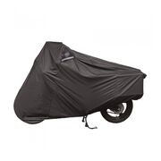Dowco's top of the line and most popular motorcycle cover. Made with ClimaShield Plus, a 300 Denier, solution-dyed polyester fabric with a durable water-repellent top coat for maximum rain and UV protection.