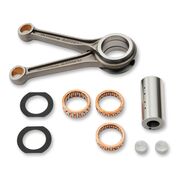 This Drag Specialties Connecting Rod Set meets or exceeds OEM specs and includes a two-hole crankpin, aluminum retainers, bearings, nuts and forged heat-treated steel rods.