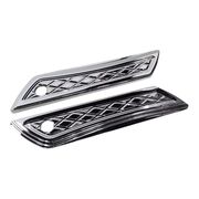 The Thunder Cycles saddlebag hinge covers are CNC-machined from 6061 billet aluminum. They replace the stock face-plates on Touring models with hard bags.
