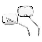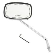 Dress up the view from your mirror with this "V-Twin" scrolled design! Scrolled design is placed around the perimeter of the mirror adding a unique style as well as text reading "V-Twin" on the lower center section of the mirror face.