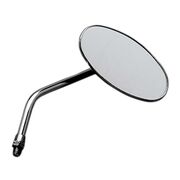 Theses are chopper style oval mirrors that screw-in. Constructed from a die-cast steel with a chrome finish. Mirrors are fully adjustable and have a 10mm mounting thread.