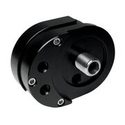 Offset sandwich adapters allow easy installation of any style remote oil cooler or additional oil filter set up. Designed with a pressure relief valve that allows constant oil flow through remote oil cooler with total protection from starving engine from oil flow.