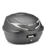 Designed for the adventurous rider, the Givi B39NT Monolock Top Case combines form and function to provide a secure and stylish storage solution for scooters and small-displacement motorcycles. With a capacity of 39 liters, it effortlessly accommodates two jet helmets or a single full-face or modular helmet, alongside other essentials. It's characterized by its sleek design, featuring smooth lines with angular accents and striking red reflectors for a touch of racing flair. The ease of use is unparalleled, thanks to the MICRO 3 locking system that ensures quick and secure lid closure, with a single key for both opening and bike detachment. The inclusion of a universal Monolock mounting plate and hardware kit facilitates easy installation, while its rigorous weather protection testing assures that belongings stay dry and secure, even in heavy rain.
