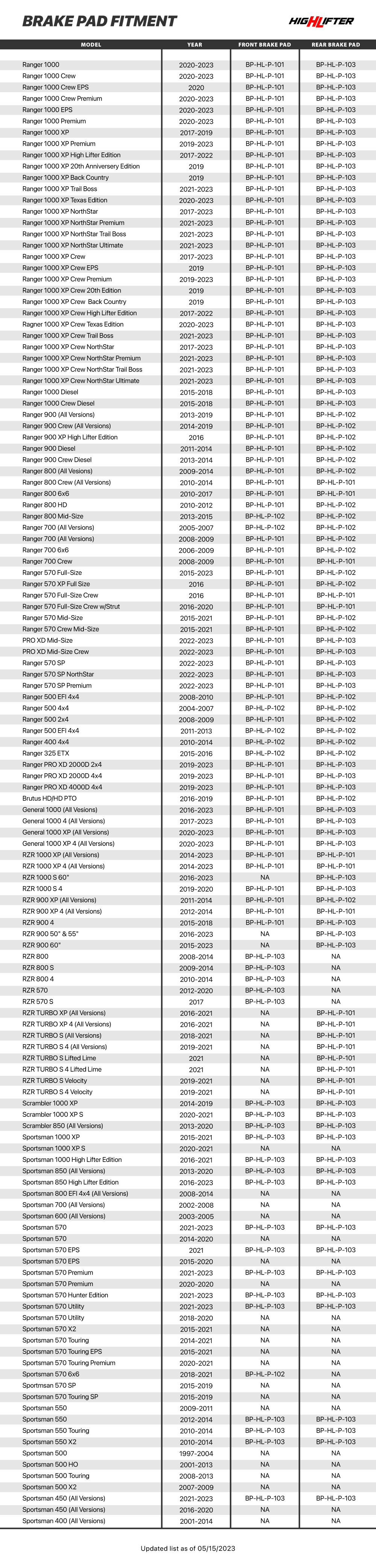 RZR 1000 XP (All Versions) |