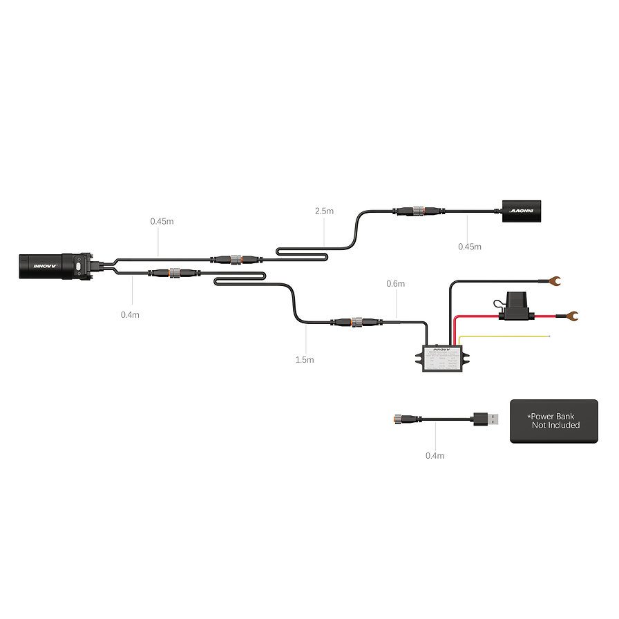 The INNOVV K6 Motorcycle Dash Cam revolutionizes the way motorcycle journeys are captured, with a dual-camera setup that includes a 2K Quad HD 1440P front camera and a 1080P rear camera to document every detail with exceptional clarity. Its durable, heat-dissipating aluminum design ensures optimal performance across various conditions. Installation is simplified with choices between USB or motorcycle battery power sources and a compact DVR integrated into the front camera unit. The device guarantees flexibility through its 3-axis 360-degree rotatable lens mount and maintains reliability with an IP67 waterproof rating. Additionally, built-in Wi-Fi and a straightforward app make footage access and management both easy and convenient.