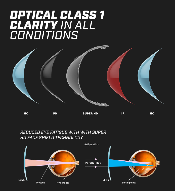 See the road ahead with zero distortion. The GT1 Expedition includes both clear and Photochromic multi-thickness face shields with Optical Class 1 clarity and high definition vision. Featuring UV400 protection and infrared shielding, they reduce solar heat inside the cabin. The included PINLOCK anti-fog lens keeps your vision clear in any weather.