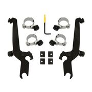 Revolutionary tool-less Trigger-Lock hardware features an innovative lockdown system that allows one to quickly and easily install and remove a Memphis Shades windshield without tools. A pair of latches lock the windshield down until the spring-loaded "trigger locks" are intentionally disengaged, allowing a simple removal. The hardware is fully adjustable to achieve just the right windshield angle. Hardware is a combination of stainless, aluminum, and electrocoated parts for corrosion resistance and long-lasting good looks. Kits are custom fit for each bike for a no-hassle install and are made in the USA.