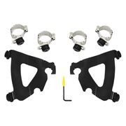 Revolutionary tool-less Trigger-Lock hardware features an innovative lockdown system that allows one to install and remove a Memphis Shades Road Warrior Fairing without tools quickly and easily. A pair of latches lock the Fairing down until the spring-loaded "trigger locks" are intentionally disengaged, allowing simple removal from the fork clamps. Hardware is a combination of stainless, aluminum, and electrocoated parts for corrosion resistance and long-lasting good looks. Kits are custom fit for your Sportster for a no-hassle install.