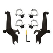 The Memphis Shades Trigger-Lock hardware sets a new standard for windshield installation and removal, featuring a tool-less design that significantly eases the process. With an innovative lockdown system, it involves a pair of latches that ensure the windshield is securely fastened until the trigger locks are disengaged for removal. This hardware is designed with adjustability in mind, allowing for optimal windshield angle tweaking. Made from a blend of stainless, aluminum, and electrocoated parts, it offers exceptional corrosion resistance and durability. Each kit is tailored for a perfect fit specific to each motorcycle model, ensuring a straightforward installation process. Proudly manufactured in the USA, this hardware combines functionality with aesthetics for lasting performance and appearance.