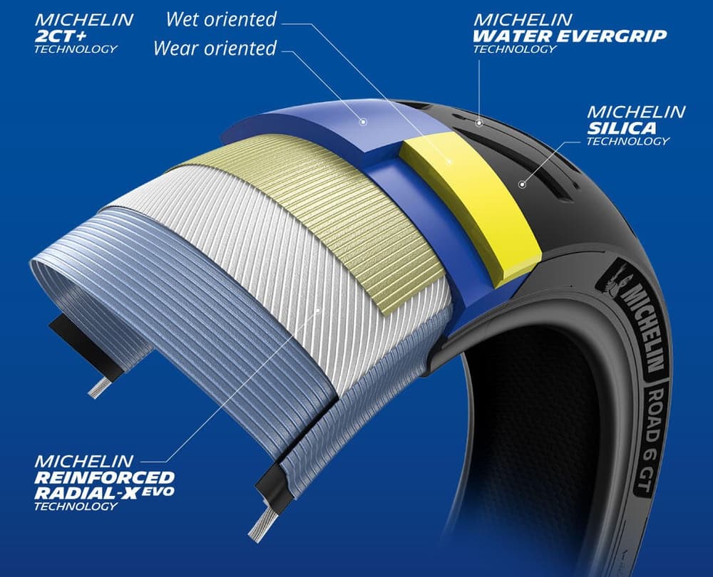 Discover the benefits of advanced compound engineering on your touring or sport touring motorcycle. This tire's construction features specialized compounds in both front and rear applications, providing increased structural rigidity, especially at lean angles. This results in markedly improved stability and rider feedback, essential when managing the unique dynamics of a heavily loaded motorcycle, ensuring precise handling and control.