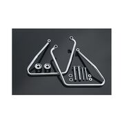 The Milwaukee Twins Saddlebag Support Brackets offer a practical solution for riders using throw-over saddlebags, ensuring that the bags stay clear of the brake caliper and swingarm. This design provides a secure and interference-free riding experience. Formerly offered under the J&P Cycles brand.