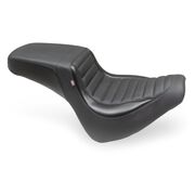 The Mustang Squareback Seat for Fat Bob delivers an updated style to a classic look. A low-cut 11.5” driver bucket rises to meet the squared-off passenger section, offering good back support. The generous 7.5"" width of the passenger section gives great support for two-up riding while maintaining a sporty look. The hand-sewn cover features a Tuck and Roll pattern in front with carbon fiber accents in the driver area and the rear.