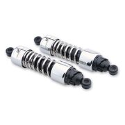 The 412 Series shocks are simply the best value shock on the market. The have a simple, durable design which means they will be an improvement to your motorcycle's suspension performance for as long as you are riding. They feature a doublewall steel body construction with nitrogen charged, multi-staged velocity sensitive valving resulting in smooth, consistent damping. A cam style preload adjuster lets you dial in your ride whether you're a light or heavy rider.