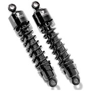 The 412 Series shocks are simply the best value shock on the market today with their simple, durable design. They will be an improvement to your motorcycle's suspension performance over the stock units. The doublewall steel body construction with nitrogen charged, multi-staged velocity sensitive valving gives you smooth, consistent damping. A five-position cam style preload adjuster lets you dial in your ride. Available in full show chrome or black with progressive rate springs in Standard or Heavy-Duty.