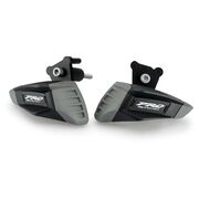 Presenting the Puig Pro Frame Sliders, a no-nonsense solution for safeguarding your bike. Boasting a substantial 130mm x 58mm Nylon puck and robust billet aluminum brackets, these sliders mean serious business, without the hassle of modifying your bike's bodywork. The slick "PRO Puig" logo end cap is the final touch. And here's the kicker – these aren't just about your bike's protection; they've got your safety in mind too, with practical rubber bumpers on the puck's rear, preventing potential knee and shin harm in case of a crash. It's all about riding with confidence and grit.
