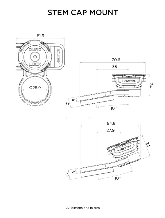 The fixed Stem Cap Mount from Quad Lock allows cyclist to keep maps, messages and a mobile devices securely mounted front and center. Pop off your stem cap, insert the Quad Lock mount, reinstall your stem cap and go. This simple design includes mounting spacers for a perfect fit and is reversible to give you options for the best angle for your device.