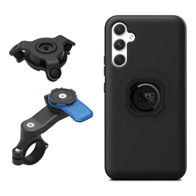 Experience the road with confidence using the Quad Lock Motorcycle Handlebar Mount Kit with Vibration Dampener for Samsung Galaxy. This kit includes the Quad Lock Motorcycle Handlebar Mount, Vibration Dampener, and Samsung Galaxy MAG Case. Attach your phone securely using the patented dual-stage lock mechanism for easy attachment and detachment, enhanced by the Vibration Dampener that reduces high-frequency vibrations. The slim Quad Lock Samsung Galaxy Case offers protection while keeping your phone accessible. Stay connected during your adventures with this comprehensive and reliable kit.