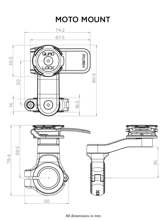 The Quad Lock Motorcycle Handlebar Mount makes it easier than ever to keep apps and navigation visible and secure during two-wheeled adventure. Patented dual stage locking mechanism makes attaching and detaching your phone from the mount is a easy, simply twist and lock in one motion. The rotating head and included extension arm allow for multiple mounting configurations and optimum visibility. An optional Vibration Dampener is available to add to your Quad Lock mount for additional stability and reduces over 90% of high frequency vibrations produced by motorcycles.