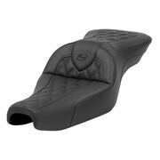 The Roadsofa is designed for those who live to ride and seek the ultimate experience in long-distance touring comfort. This seat integrates Gelcore Technology for both the rider and passenger, ensuring an immersive seating experience unlike any other. Unlike typical seats that leave you perched on their surface, the Roadsofa's unique split-cushion design with lumbar support gently cradles you into the advanced Gelcore layer, offering unparalleled relief and comfort over extensive journeys. Saddlemen's exclusive Gelcore Technology, a closely held trade secret, stands unparalleled in its ability to absorb, redistribute and mitigate vibrations and impacts through a sophisticated mechanical process, resulting in a remarkably smooth and restorative ride. In its commitment to excellence, Saddlemen selects only the finest materials, such as Saddlehyde, which combines an elegant appearance and tactile softness with stretch properties that complement the gel and foam components for superior comfort. The innovation extends to Saddlemen's Progressive Density Foam, a product of rigorous research and real-world trials, offering a perfect balance between support and softness. The foam's structure, with varied cell sizes and resistance to environmental elements, not only boosts comfort but also significantly enhances the seat's longevity.