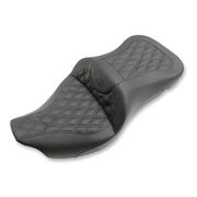 The Roadsofa is designed for those who live to ride and seek the ultimate experience in long-distance touring comfort. This seat integrates Gelcore Technology for both the rider and passenger, ensuring an immersive seating experience unlike any other. Unlike typical seats that leave you perched on their surface, the Roadsofa's unique split-cushion design with lumbar support gently cradles you into the advanced Gelcore layer, offering unparalleled relief and comfort over extensive journeys. Saddlemen's exclusive Gelcore Technology, a closely held trade secret, stands unparalleled in its ability to absorb, redistribute and mitigate vibrations and impacts through a sophisticated mechanical process, resulting in a remarkably smooth and restorative ride. In its commitment to excellence, Saddlemen selects only the finest materials, such as Saddlehyde, which combines an elegant appearance and tactile softness with stretch properties that complement the gel and foam components for superior comfort. The innovation extends to Saddlemen's Progressive Density Foam, a product of rigorous research and real-world trials, offering a perfect balance between support and softness. The foam's structure, with varied cell sizes and resistance to environmental elements, not only boosts comfort but also significantly enhances the seat's longevity.