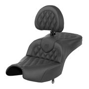 The Roadsofa seat is tailor-made for those riders who are passionate about long-distance touring. This premium touring seat incorporates exclusive Gelcore Technology for both rider and passenger, offering superior comfort by effectively reducing vibration and shock through its unique mechanical process. Unlike typical seats that sit you on the cover, the Roadsofa's split-cushion design cradles you in the Gelcore for a therapeutic ride. Crafted in-house, this technology sets it apart, as its formulation remains unrivaled. Covering this technological marvel is Saddlehyde, a material chosen for its aesthetic appeal, comfort, and resilience. Mimicking the grains and softness of leather, it adds a luxurious touch and enhances comfort through its elasticity, working in tandem with the Gel and foam for an unbeatable riding experience. The culmination of years of research and on-road experience led to the development of Saddlemen's Progressive Density Foam, a carefully formulated material that strikes a perfect balance between support and softness. This innovative foam is encased in a water-resistant skin, ensuring the seat's longevity and consistent comfort over time.