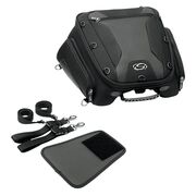 The aerodynamic shape and rider-convenient features make stashing your gear easy and does it with leading edge style. The tunnel bag attaches to almost any rear seat or pillion up to 9-inches wide with an included mounting system, and additional straps for extra security. Once secured to the rear seat area, the bag can be removed and re-attached to the bike within seconds using a series of cam locks on the outside of the bag.