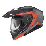 The Scorpion EXO-AT960 Modular Helmet is a versatile evolution of the EXO-AT950 Adventure Motorcycle helmet, designed for both adventure and touring enthusiasts. It features a removable peak visor, allowing for use as a full face ADV helmet or a more aerodynamically friendly touring helmet. Its oversized eye port offers extended peripheral and downward visibility, while the modular chin bar provides convenience for the rider. Equipped with an internal drop down Speedview sun-visor, it adapts easily to changing light conditions. Additionally, it is engineered for seamless integration with the EXO-COM Bluetooth Communicator Kit and is compatible with many Bluetooth systems, thanks to its large speaker pockets, enhancing connectivity for riders.