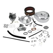 The Super E has a 1-7/8" bore, slightly smaller than the Super G, making it perfect for engines with displacements up to 100 cubic inches. The Super E creates higher air velocity than a CV carb, which results in better low and mid-range response and power! This complete kit includes an S&S teardrop air cleaner assembly, intake manifold, mounting hardware, fuel line and clamps, overflow line, one extra intermediate jet and two main jets, VOES tubing, and installation/jetting instructions.