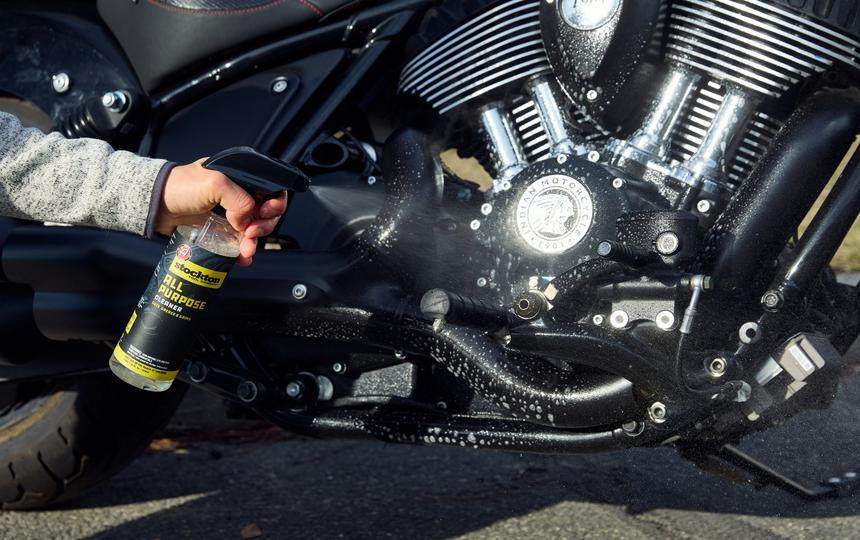 Clean it all with Stockton by Adam's All Purpose Cleaner. This powerful degreaser is safe for your bike and the environment. Get that grime off without worry.