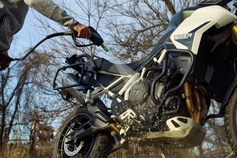 FULLY ALLOW BIKE TO COOL BEFORE WASHING. If it's too hot to touch it's too hot to wash. Not only do you risk hurting yourself but you also risk ruining the finish of your bike/exhaust/engine if the bike is hot while washing.