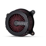 Performance and style come together in the Vance & Hines VO2 Air Cleaner Kits. Countless R&D research and dyno time come into play when these kits are thrown up on the drawing board. Performance is always in mind but trying to supply the riders with cost efficient systems that don't lack the quality you expect. The VO2 Cage Fighter Air Intake is at its full potential when its paired up with a Vance & Hines Exhaust system and the FP3 FuelPak. The VO2 is a direct bolt-on air cleaner that attaches directly to the factory throttle body. It includes a washable high-flow element, Vance & Hines Force Velocity Stack backing plate to help increase air flow along with boosting performance! Available to be ran naked without a cover, utilize your stock cover, or pick between one of their flashy covers in various finishes.